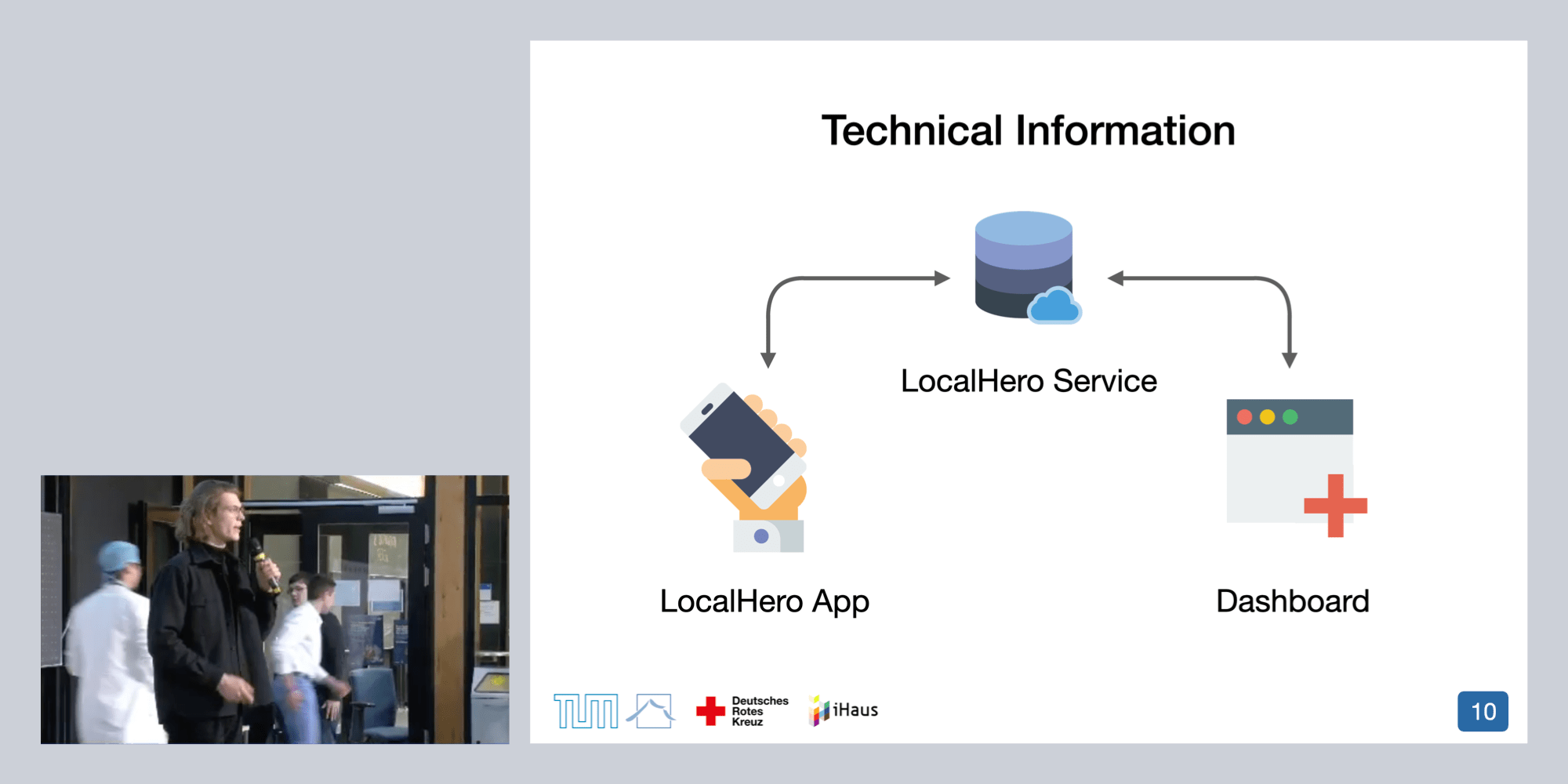 In my master's, I took part in TUM's software-engineering practical iPraktikum. Our team built the community-based iPhone application LocalHero for the German Red Cross in cooperation with an industry partner. The system connects people in need of general assistance or with urgent medical emergencies with helping users around them. — with Prof. Brügge